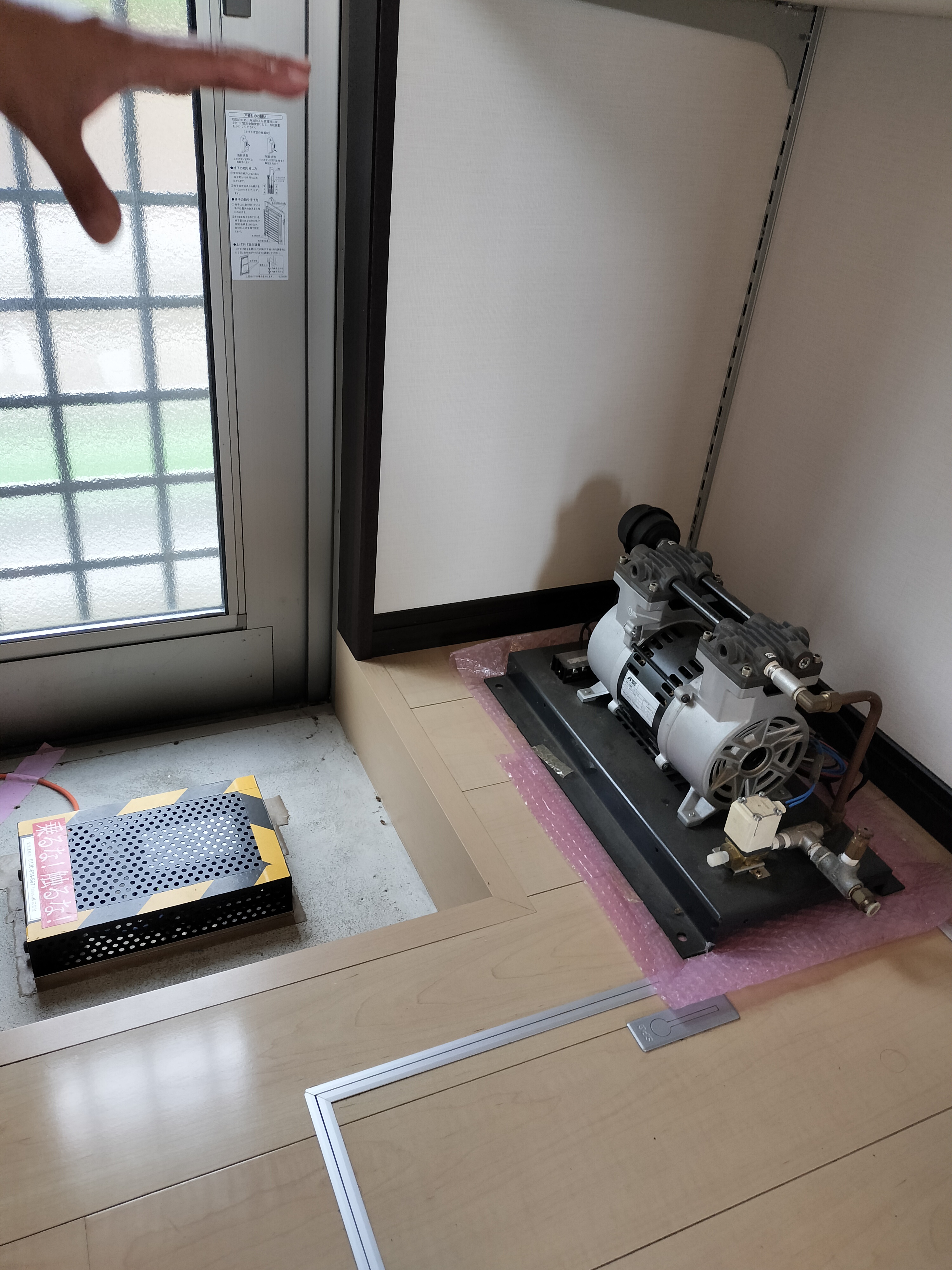 コンプレッサーに関してはわかりやすく配置してあるだけ、とのことで、通常は見えない場所に設置するそうです。